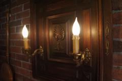 アンティークランプのパーツを扉に組み合わせ照明にしました。