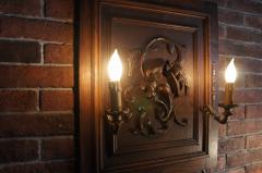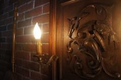 アンティークランプのパーツを扉に組み合わせ照明にしました。