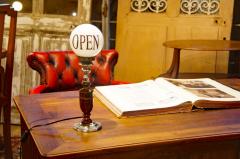 フランスアンティーク ウッド 燭台 OPENサインテーブルランプ ②