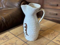 ピッチャーの地色は、当時のモダンな雰囲気を持つ、ザラザラとした質感の白い釉薬。