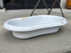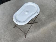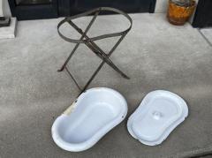 フランスで買い付けた、ホーロー製のアンティークコンテナとアイアンスタンドのセットです。
