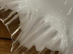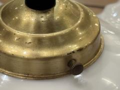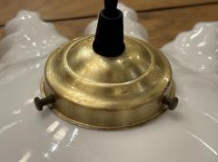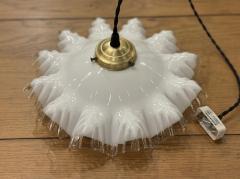 乳白色のガラスシェードに、縁はクリアガラスで縁取られており、