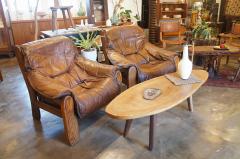 空間に馴染みやすいブラウンレザーとウッドの組み合わせで