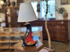 1950〜60年代ミッドセンチュリーらしい大胆なデザインが印象的なセラミック製テーブルランプ。
