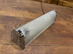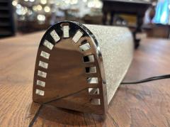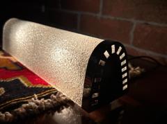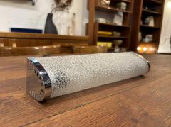 筒状のアクリルシェードには独特の凹凸テクスチャが施され、灯りをともすとやわらかく