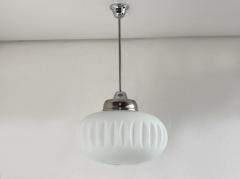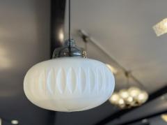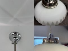 クロームのフィッティングと柔らかな乳白色ガラスの組み合わせが美しく、