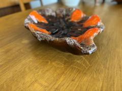 ブラウンを基調に溶岩のような釉薬が広がり、目を引くオレンジカラーとのコントラストが絶妙。