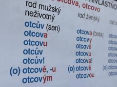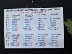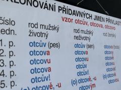 チェコ語の文法学習に役立つ、形容詞の活用を一覧でまとめた教育用です。