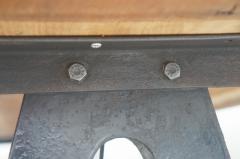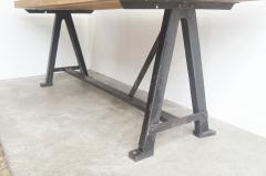 工業機械の脚に古材のオーク天板を取り付けたテーブル。
