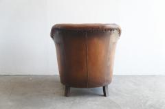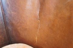 本革特有の経年変化による風合いとひじ掛け、背面に打ち付けられた鋲が魅力的で、