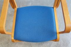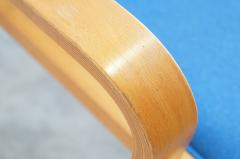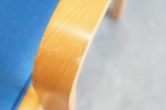 曲げ木を使用したビーチ材の曲線に鮮やかなブルーカラーの座面で