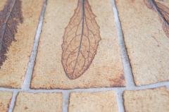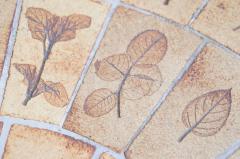 こちらのタイルテーブルは本物の植物を押しつけて柄とした