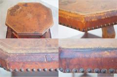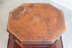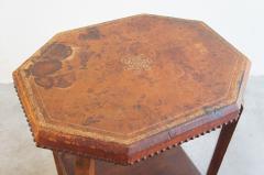 古い物ならではの味がでた8角形のレザートップのテーブルです。