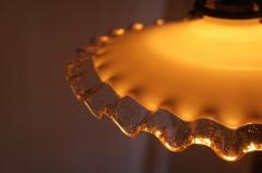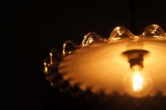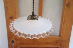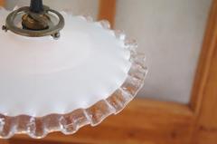 美しいフリルシェードが印象的なアンティークのペンダントランプ。