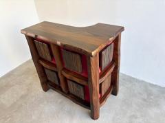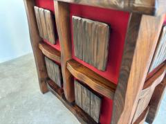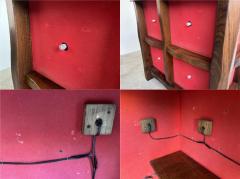 フロント部分には立体感のあるウッドパネルが施され赤いファブリックのコントラストが印象的。