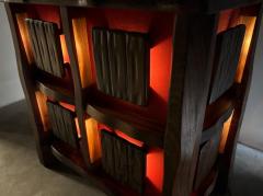ウッドパネル内部には間接照明が組み込まれており、灯りをともすと温かな光が木目を際立たせ、