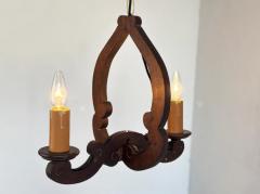 フランスアンティーク 2灯 ウッドシャンデリア