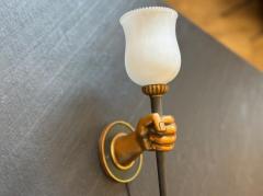 フランスで買い付けた、手のモチーフが印象的なブラケットランプです。