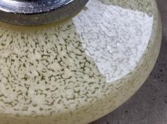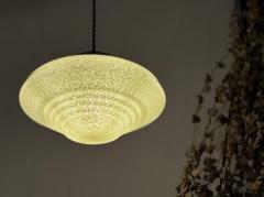 淡いイエローのガラスシェードは独特の質感と繊細な模様が施されており、