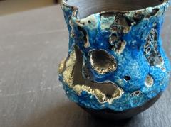 溶岩のように盛り上がる青の釉薬が、荒々しくも美しい存在感を放ちます。
