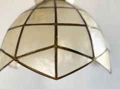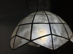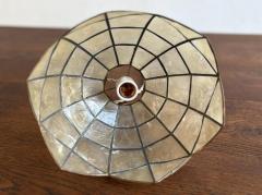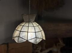 透明感のある薄い貝殻をステンドグラスの様に繋ぎ合せた繊細なランプで、