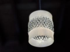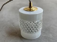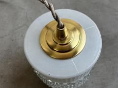 シェードは厚みのあるカットガラスで、中央には鋲のような立体的なプレス模様が施され、