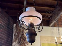 フランスにて買い付けた、アンティークのオイルランプをモチーフにしたペンダントランプ。