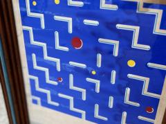 詳細は不明ですがブルーを基調とした幾何学的なデザインが印象的。