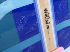 詳細は不明ですがブルーを基調とした幾何学的なデザインが印象的。