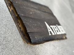 「ATELIER」の文字をハンドペイントで施した看板です。