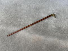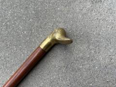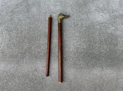 アヒルのモチーフをした真鍮製の持ち手を備え、長い年月を経た金属の深い艶と木部の風合いが