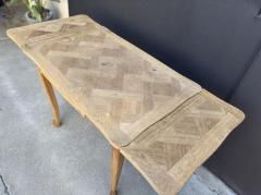 オーク材の天板は複雑で美しいパーケットリーが丁寧に組み合わされ