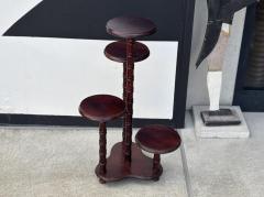 複数の円形の棚板が様々な高さに配置された立体的なプランターラックです。