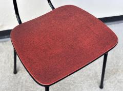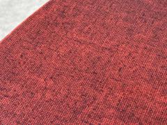 深みのあるレッドカラーの座面と背もたれには、繊細なカスリ柄のビニールレザーが使用されています。