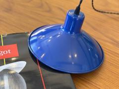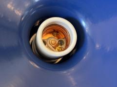 コバルトブルーが印象的な、ヴィンテージの琺瑯(ホーロー)ペンダントランプです。