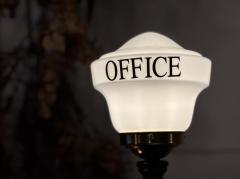 オフィスサインを貼ったガラスシェードを装備。