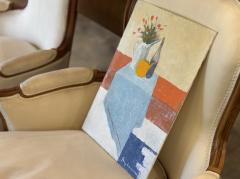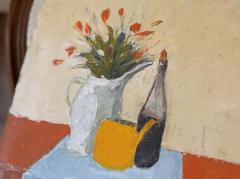 大胆な色彩と厚塗りの技法によって、マグカップや花瓶、ボトルが描かれています。