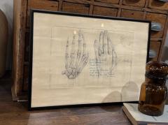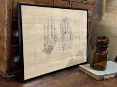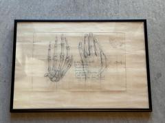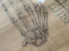 手と骨が鉛筆にてデッサンされた芸術と科学が交差するハンドデッサン。