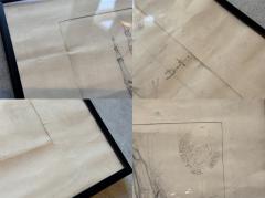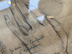 スケッチには青いインクでフランス語の手描きメッセージが添えられています。