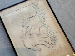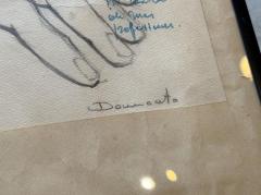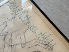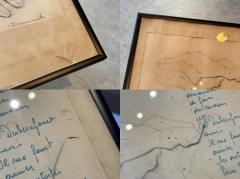 スケッチには青いインクでフランス語の手描きメッセージが添えられています。