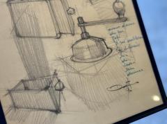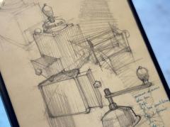 鉛筆によってコーヒーミルを描いたオリジナルスケッチです。