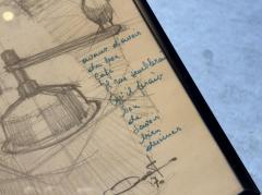 スケッチには青いインクでフランス語の手描きメッセージが添えられています。