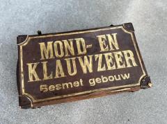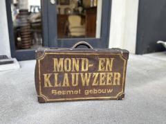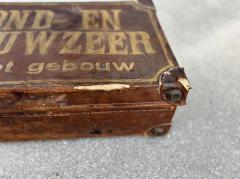 オランダで買い付けた動物の病気に関する警告ポスターをアンティークトランクに