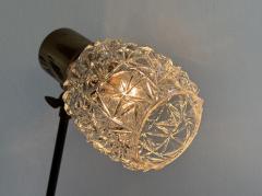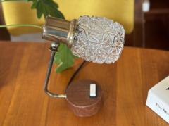 カットガラスの肉厚なシェードに、丸いウッドの土台。