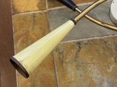 放射状に伸びる真鍮製アームと、プラスチック製のコーン型シェードが印象的なランプ。
