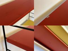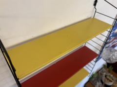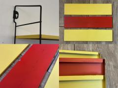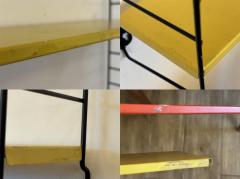 赤・黄のカラフルな棚板とブラックのスチールフレームの組み合わせは、オランダのモンドリアンを