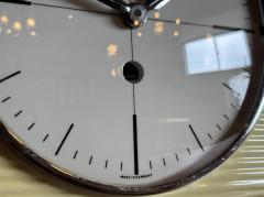 文字盤のミニマルなインデックスと、それを引き締めるクロームの針が、当時のドイツらしい質実剛健さと