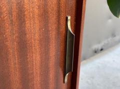 真鍮の取手と温かみのある褐色の木肌が印象的な一品。