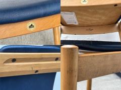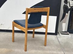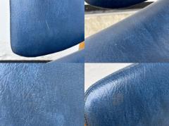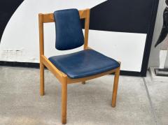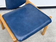 明るく滑らかな木肌が特徴のビーチ材のフレームに、深みのあるブルーカラーのフェイクレザーを
