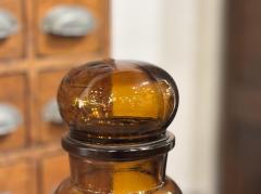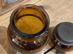 ぽってりとした丸い蓋がステキなアンバーガラスの瓶。